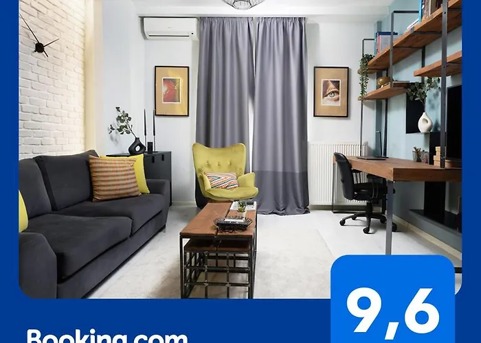 Casa Navarino - Premium Apartment In The City Centre, situado en el centro de Tesalónica, se encuentra a aproximadamente 600 metros de la Torre Blanca de Tesalónica. El apartamento de 55 m^2 ofrece a sus huéspedes vistas a las montañas y una barbería.